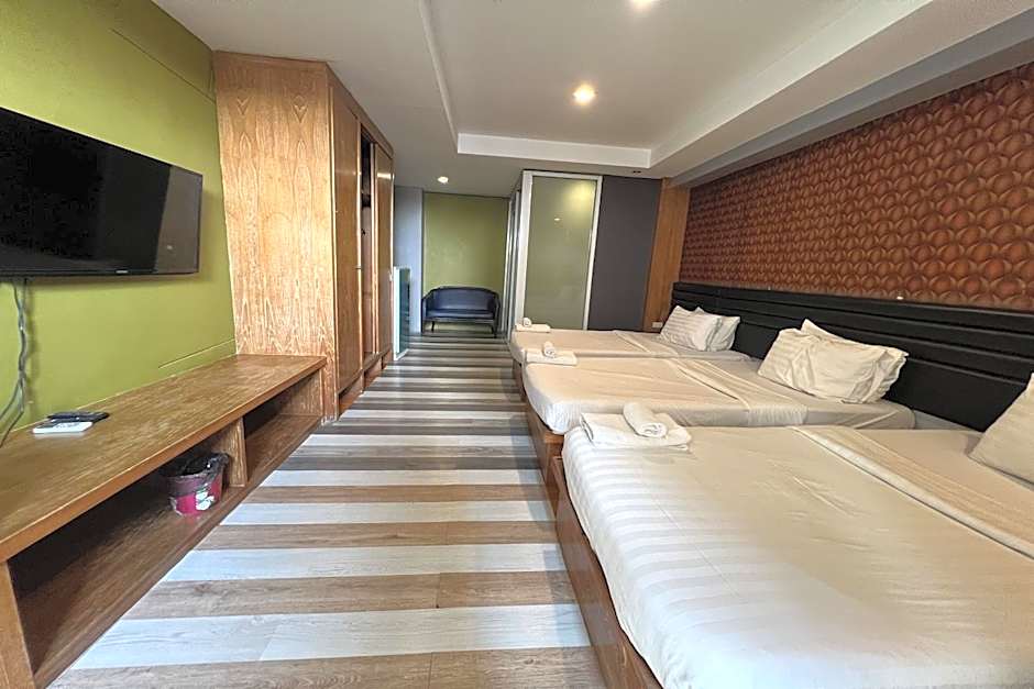 Deluxe Corner Room is 431 square feet and includes a king-size bed 150-183 width plus balcony, extra beds on demand, desk, satellite tv , cable tv, hairdryer, and slippers.